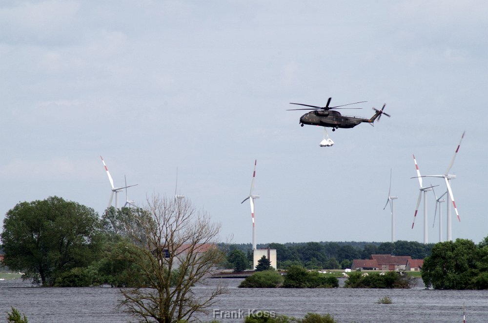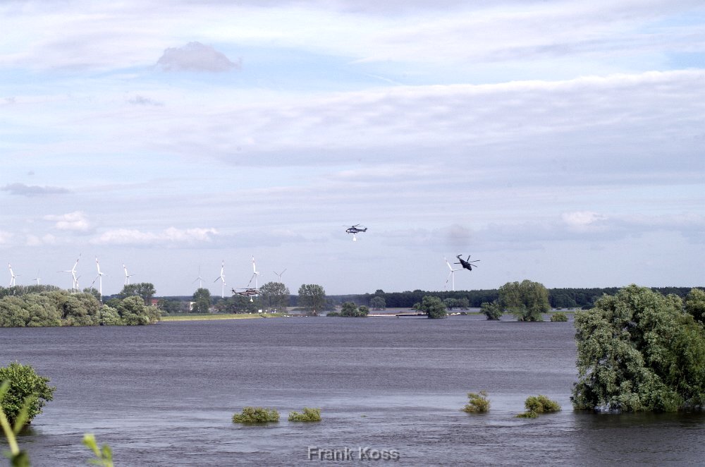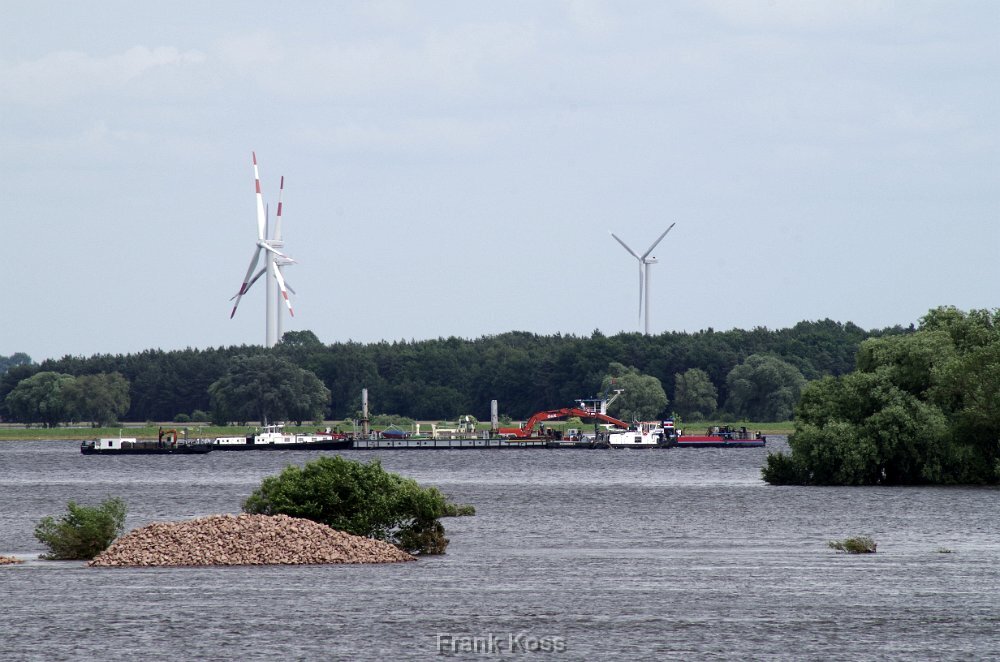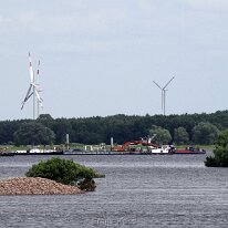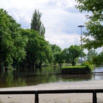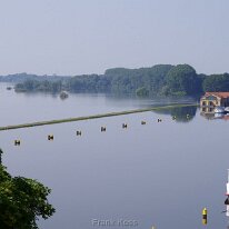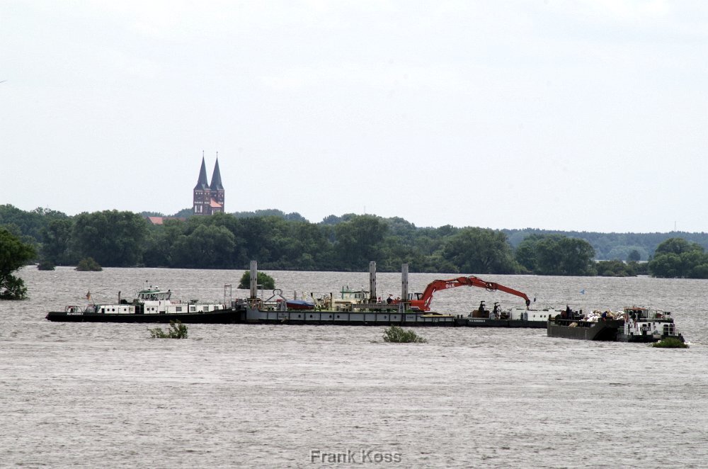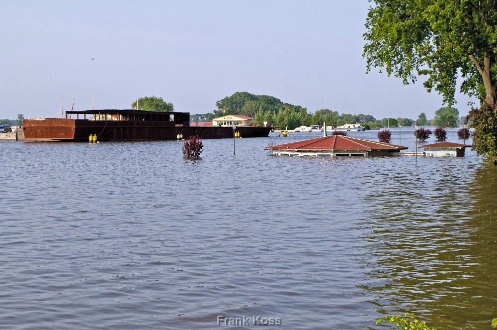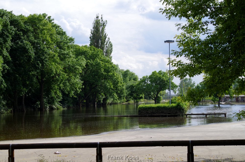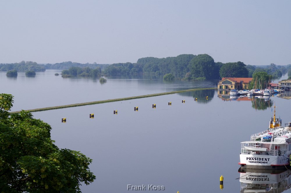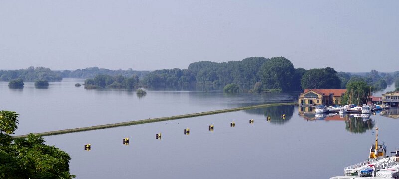 Blick auf den Hafen Tangermünde am 12.Juni 2013. Der Hafendeich ist in den Fluten fast verschwunden.