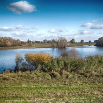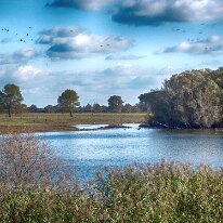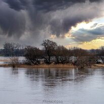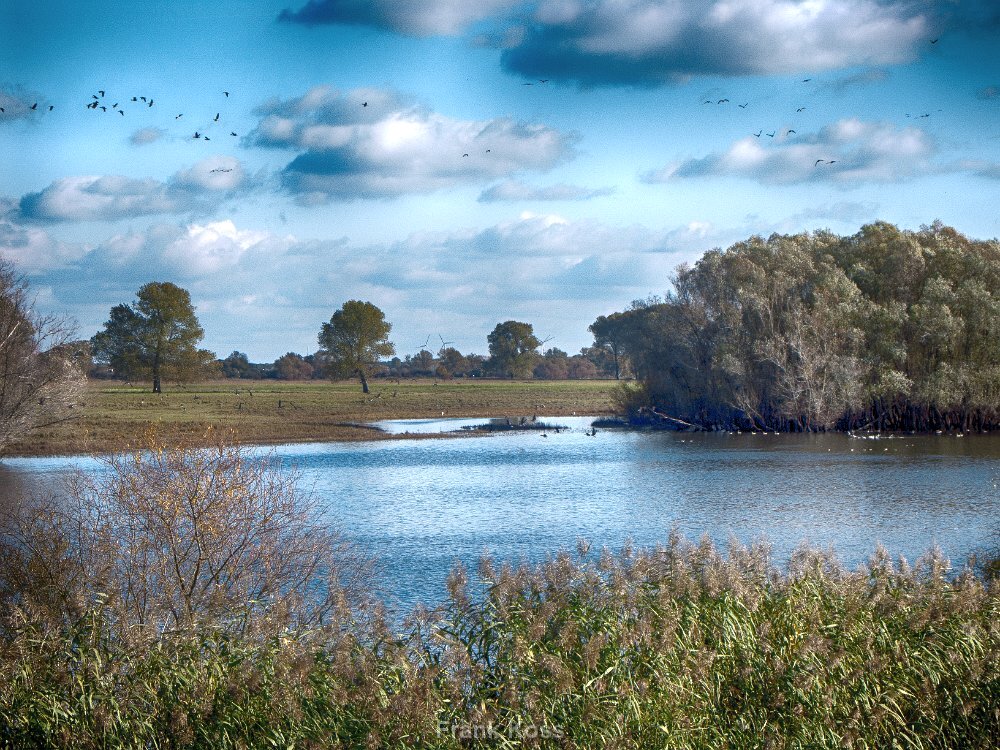 Die Elbelandschaft im Wechsel der Jahreszeiten. Blick auf einen Altarm des Flusses, umrahmt von Schilf und den typischen Auenwäldern. Ein Paradies für Vögel.
