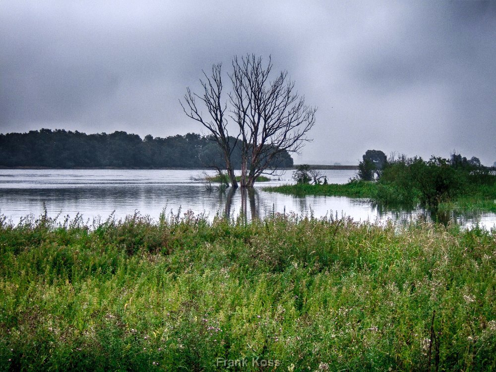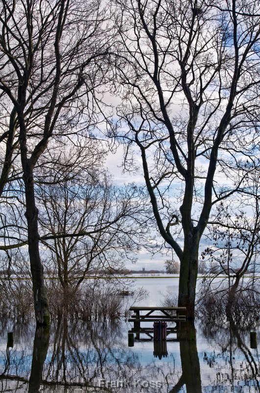 Die Ruhe der Überschwemmung, in der die Welt sich spiegelverkehrt im Wasser neu findet und ein alter Treffpunkt im Element versinkt.