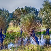 Diese Weidenbäume, die im Wasser stehen, zaubern eine malerische Stimmung, als würden sie direkt aus einem Märchen stammen. Ihre knorrigen Stämme und die…