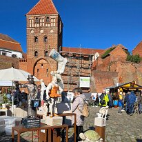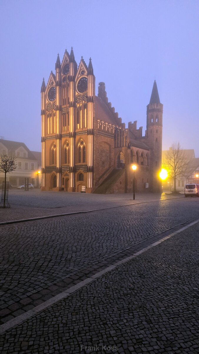 Wo Geschichte auf kleinen Rummel trifft: Das gotische Rathaus von Tangermünde, eingefangen an einem bewölkten, aber stimmungsvollen Nachmittag.