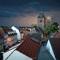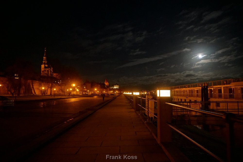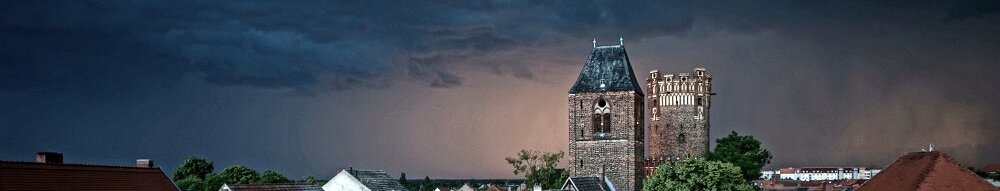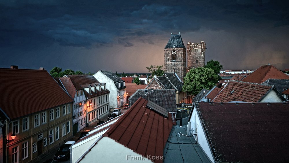 Tangermünde bei Nacht: Die historischen Mauern im warmen Schein der Laternen, während der Vollmond durch die Wolken bricht. Ein unvergesslicher Moment.