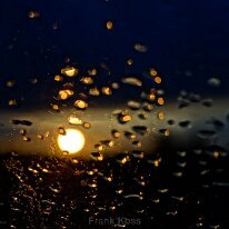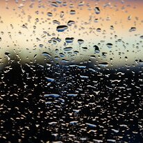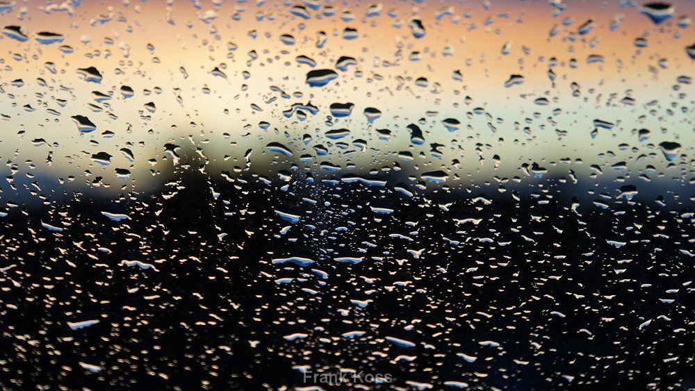 Ein stiller Moment am Fenster – Regen küsst das Glas, während die Sonne den Horizont in goldenes Licht taucht.