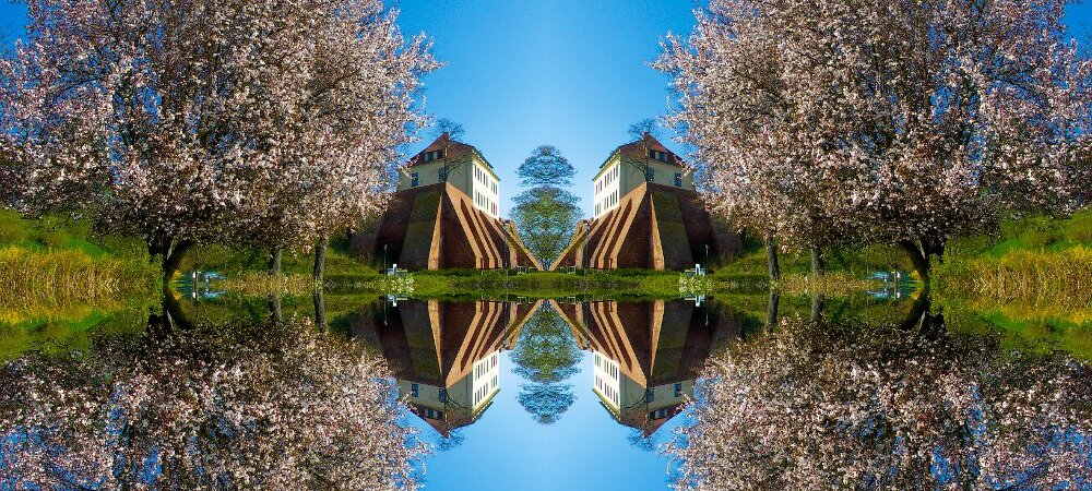 Fahrradweg auf dem Deich Blume Baum Elbewiese bei Tangermünde Schlosshotel gespiegelt Deichbruch Fischbeck 2013