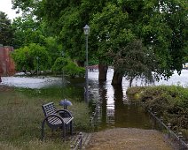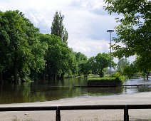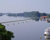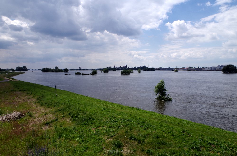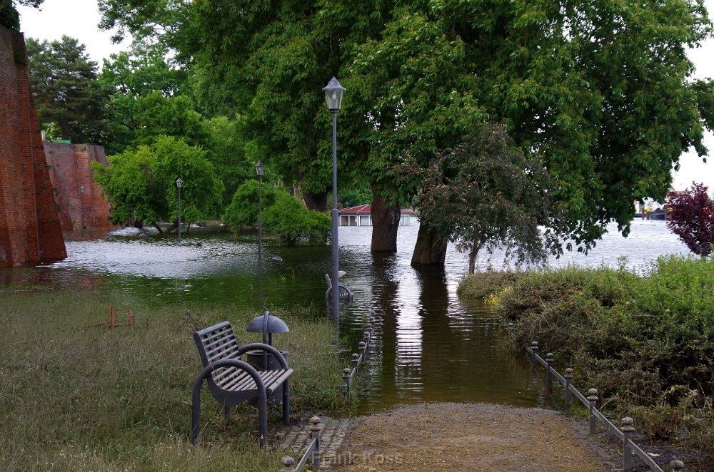 Blick auf den Hafen Tangermünde am 12.Juni 2013. Der Hafendeich ist in den Fluten fast verschwunden.
