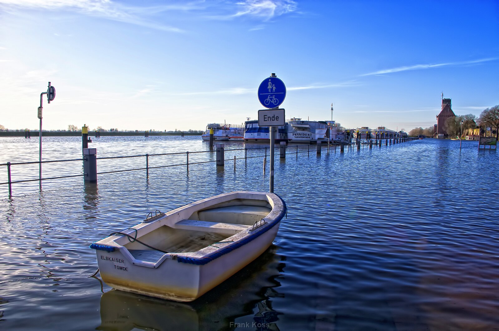 Die Elbe wird zur Bühne: Tangermünde im sepiafarbenen Licht der Flut. Ein Moment, in dem die Silhouette der Stadt Ehrfurcht einflößt.
