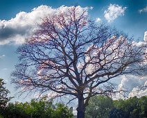Das majestätische Gerüst eines Baumes ragt vor einem dramatischen Himmel empor, seine kahlen Äste erzählen Geschichten vergangener Jahreszeiten und…