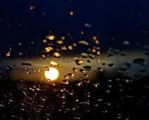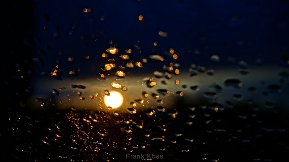 Ein stiller Moment am Fenster – Regen küsst das Glas, während die Sonne den Horizont in goldenes Licht taucht.
